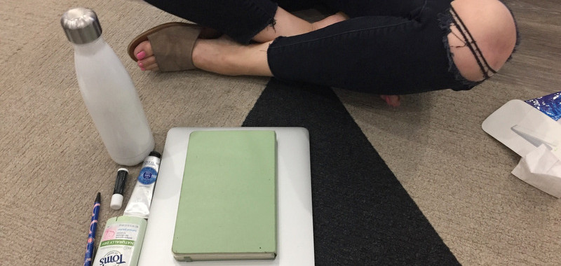 As we worked, more categories emerged. Christina found everyday items, like chapstick, lotion and notebooks, work items, like Mr. Dave postcards and her laptop, and #memorabilia, like a recent concert ticket. She also found more just in case items, like deodorant, bandaids and tampons. She also gathered up things to toss, including receipts, gum wrappers and loose candy. #CATY