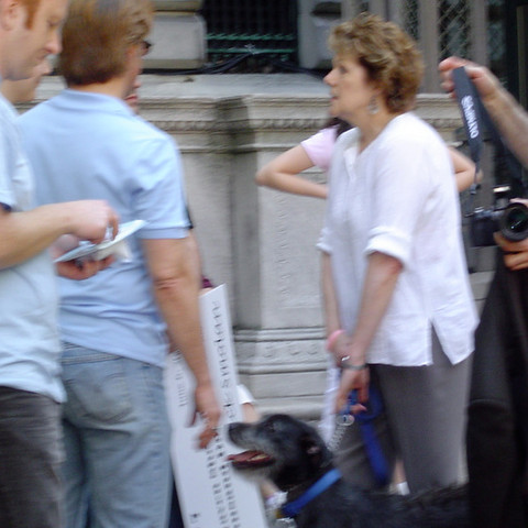 Oh wow! Last week I had a crazy experience. My cat Telly was featured in a book Cats 24/7: Extraordinary Photographs of Wonderful Cats. His photo was put up in Bryant Park along with dozens of others. They had an opening celebration with the lovely Lynn Redgrave (who brought her sweet dog). And as New Yorkers do, they brought their pets. I didn’t see any cats, but the dogs (and their owners) were indeed out.